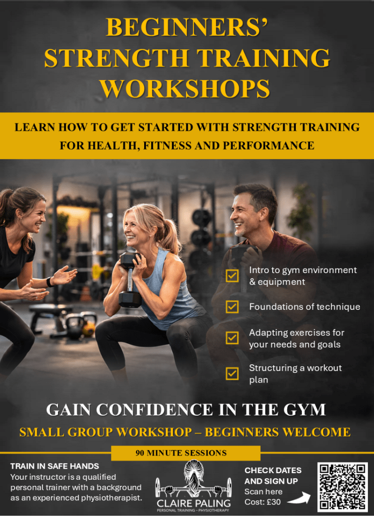 After your first workshop, you might feel confident to get started independently in a gym or at home. Or if you would like more input, there will be options of follow-on workshops, personal training and/or bespoke programming to support you on your journey.
